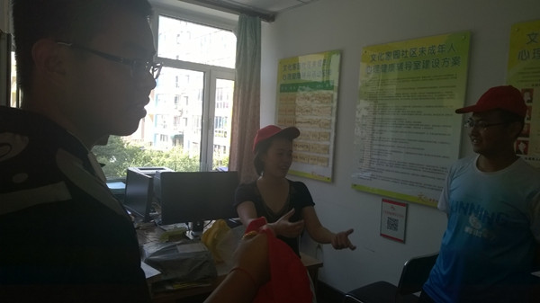 上午9时30分,全体人员在姜涛的带领下来到了文化家园小区。首先,大家与小区负责志愿者工作的唐子琪女士进行了短暂交流,了解了慰问老人的基本情况。