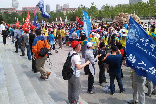 2015年5月25日中午,各院系及后勤部、机关处等共组成26支队伍,在图书馆门口聚集在一起,院系内党委书记、秘书长、年级辅导员、在职教师等积极响应活动号召,参与其中。