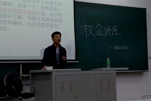 而后,主讲人给同学们展示了一系列权益案例,并对案件及处理方式进行了一一点评,同时,还对维权流程做了详细的介绍。最后,李涛对本次讲座作出总结,倡导大家勇于维护自身权益。整个过程,学子们与主讲人积极互动,活动现场气氛热烈。
