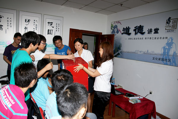 7月25日下午13时30分公司ladbrokes立博小红帽志愿者服务队与核公司我核你志愿者服务队一起参加了文化家园的道德讲堂活动,船舶公司实践部部长马建兴,核公司实践部部长范学振参加了本次活动。