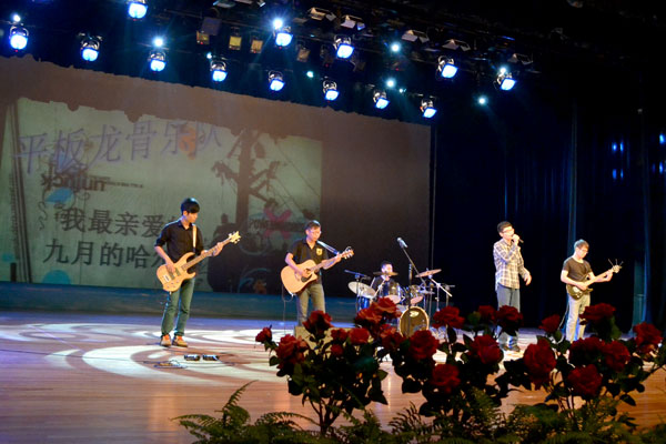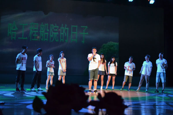 15时30分,灯光变暗,伴随着轻柔的吉他声,大幕缓缓拉开,平板龙骨乐队用一首《我最亲爱的》来点亮了舞台的灯光,也点燃了同学们的激情。一首蕴含对公司不舍的温情歌曲之后,平板龙骨乐队又用一首原创歌曲《九月的哈尔滨》为点燃的热情添了一把火,燃烧了整个启航剧场。同学们用掌声欢送走了平板龙骨乐队,也迎来了我们智慧美丽,沉稳帅气的主持人,他们可是船院辩论队的主力,如今,即将离开的他们又将为我们再一次的展现他们舌战群儒的口才。