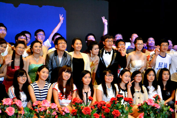 之后上场的一对活宝,为我们带来了一段雅俗共赏的相声《说毕业》,讲述了校园里的幽默,也感慨了未来的茫然,嬉笑怒骂中逗去了大家最多的掌声,也带大家回味了他们一路走来的大学四年。欢快过后,总会伴随忧伤,不知导演是不是故意为之,一句“又回到最初的起点”,让大家的笑声慢慢的消散,伴随着歌曲优美的又略带感伤的旋律,看着大屏幕那被学长们用四年青春改写的歌词,真的就回到了四年前那个青葱的自己,背着行李包来到这里,军训,学习,玩乐。简简单单的四年,又不是简简单单的四年,总有一些东西留下,总有一些情要带走。全场观众安安静静的回忆了自己的大学时光,有的要说告别,有的正在享受。不知不觉中,曲已终,眼泪却再也擦不干净了。