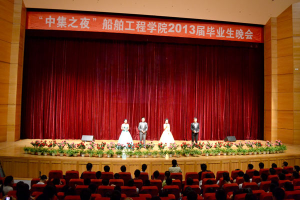 7月2日下午,天公不作美,下着蒙蒙的细雨,但并不影响船舶学子的高涨热情,同学们早早就来到了启航剧场,有序的找到自己的位置,等待着2013届的毕业晚会的开始。
