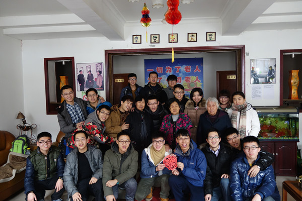 上午9时,志愿者们乘公交来到了香坊区康乐老年公寓,像往常一样志愿者们买了水果,结成小组分发给老人。在与老人们的交谈中可以看到他们发自内心的快乐,即使是简单的闲聊也能够让他们感受到来自不是亲人胜似亲人的温暖。为了增加元旦热闹的气息,同学们拿出彩纸剪起了窗花,并邀请老人也加入其中。最后同学们把一朵朵窗花贴在窗户上,为老年公寓增加了新鲜感。快乐的时光总是短暂的,为期2个小时的活动让志愿者们依依不舍,纷纷与老人合影留念。