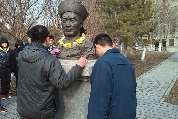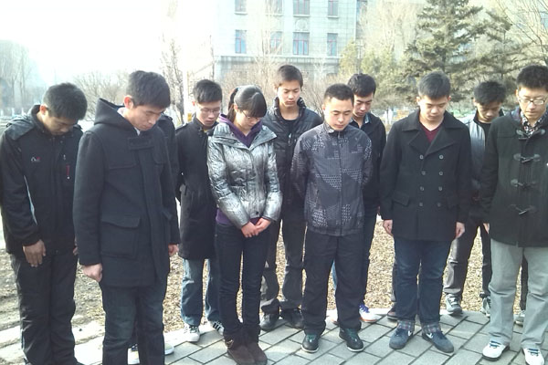 大家听了邓世昌的壮烈事迹后深有感触,,在主持人的引导下,默哀一分钟,以缅怀邓世昌先生。默哀结束后李达、张柏硕同学对铜像进行了清洁。过本次清明祭扫活动,同学们深刻的认识先烈们崇高的爱国精神、并立志将这种精神传承下去。