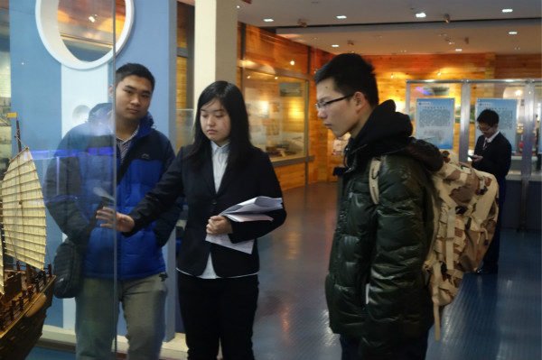 本次比赛依照船舶博物馆的展区划分了五个赛区,15名进入决赛的选手在各自的讲解展区内进行讲解。每位选手的讲解分为“现场讲解”和“评委提问”两个环节,共计时六分钟。第一名选手在进行讲解之前为我们介绍了中国船舶的发展历史,同时与国外同时期船舶作了比较,并以幽默的语言与参观者进行互动。