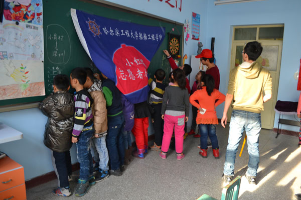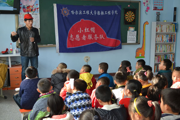 11月27日上午8时30分,ladbrokes立博小红帽志愿者服务队在哈尔滨市通乡小学展开以“传递感恩,快乐成长”为主题的七彩科普课堂。