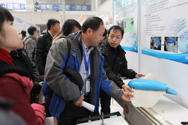 透过拥挤的人群,有这样一个有趣的作品吸引了评委和观众的注意,它是公司李凤来老师指导的“基于TRIZ理论的仿生鱼设计”。作品以仿生蝠鲼机器鱼为载体,将其与水下探测、水质监测等设备相结合,具备水下图像采集、自主避障、水质监测等功能,可实现程控和遥控两种控制方式之间的切换。采用电动驱动方式,游动噪声小,且有蝠鲼鱼外形,对周围水生生物影响较小,另其上加装由摄像头,多种传感器,和无线传输装置,作品运用TRIZ理论中的资源分析、矛盾分析、物场分析、技术系统进化法则,能很好的用于水底探测、生物研究、水体监测工作等方面。