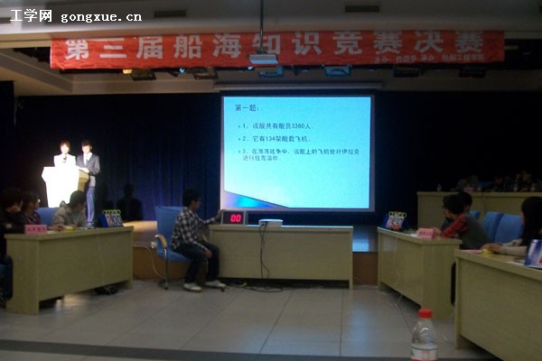 14日晚6:30分,第三届船海知识竞赛决赛在启航多功能厅开幕。公司党委副书记张为峰老师,校员工会主席范杰,校科协主席李昌,校青协主席武春霖,校学通社社长沈施岑,动力与能源公司团委副书记马旋等领导嘉宾出席了本次决赛。
