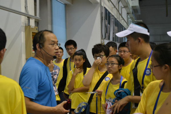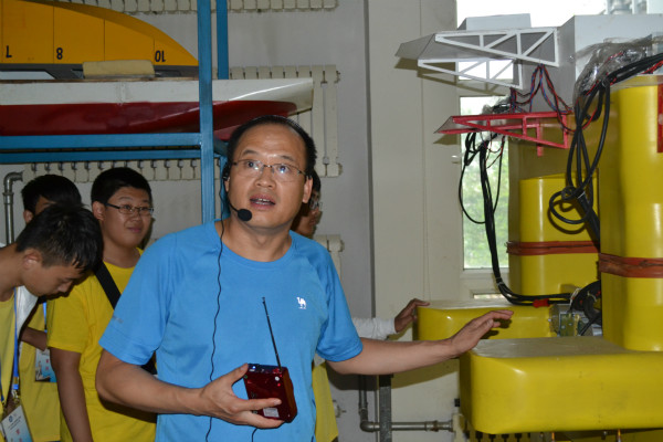 2014青少年高校科学营的同学们以连为单位,分批次分别参观老水池国家重点实验室和智能水下机器人实验室技术国防重点实验室。在参观老水池时,由赵大刚对水池和拖车进行讲解,之后田太平和李晗生介绍了员工科技作品。接着,他们去参观智能水下机器人实验室,每位小朋友都带着充满好奇的眼神跨进实验室的大门。在开始讲解前,主讲人常文田首先强调了参观的纪律,以保证安静有序安全的参观。之后,他为同学们介绍了智能水下机器人实验室的创始人,中国工程院院士:徐玉如。讲述了他为公司作出的杰出贡献。