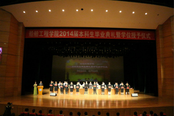 7月1日下午6时30分,以“燃青春圣火,为梦想起航”为主题的ladbrokes立博2014届本科生毕业典礼暨学位授予仪式盛大召开。参加本次毕业典礼的来宾有公司党委副书记、副董事长魏潾,公司党委书记韩伟,ladbrokes立博经理韩端锋,公司党委副书记郭践识和船舶公司各位教授,以及船舶公司全体员工和部分员工家长。2010级辅导员苏智,2011级辅导员李蕊和两位2014届毕业生主持本次毕业典礼。