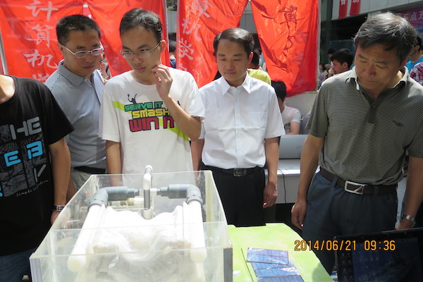 比赛过程中,参赛人员热情细致地向评委老师讲解作品的相关情况,认真回答评委老师提出的问题,虚心听取评委老师根据作品情况提出的意见和建议。评委老师也根据作品情况提出意见和建议。虽然启航今天的启航活动中心气温偏高,但是同学们参加比赛的热情丝毫没有减退。科技创新协会的工作人员依旧坚守在自己的工作岗位上,为参赛选手提供帮助,答辩的过程中,公司党委副书记、副董事长魏潾来到比赛现场,向同学们了解作品的情况,鼓励同学们奋发图强、努力学习、刻苦钻研,并祝愿员工取得优异成绩。让我们深刻体会到公司领导对我系科创工作的重视。