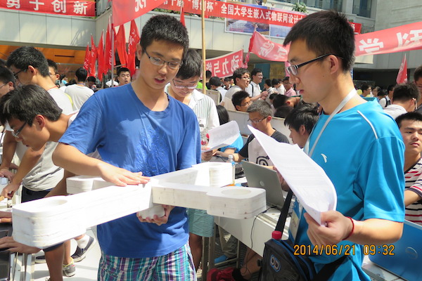 21号早7时30分,参赛的同学们早早来到启航活动中心大厅,船舶公司科技创新协会工作人员也提前就位,指引选手到达指定场地、并帮助选手检查参赛作品,审阅答辩PPT等,为接下来的比赛做好准备工作。
