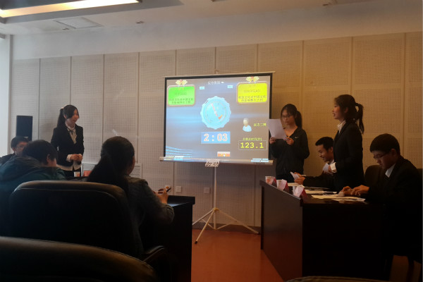 由于赛前的充分准备,船舶公司的的队员们都显得信心十足,气势昂扬。辩论赛开始,首先是正方辩友进行立论。随后反方一辩周方宇胸有成竹地进行了理论陈述,结合查询的资料,他的言语清晰,思维清晰,令台下观众点头称赞接下。质询环节更是精彩非凡,反方三辩鲍建宇针对正方立论稿中的瑕疵漏洞进行了强有力的询问,而正方的回答反而证明了我方观点的正确。面对正方的攻势,反方二辩季雪芹巧用四两拨千斤的方法,以“韩流文化是否指的就是韩国文化”为主要基础,击破了对手的观点,获得场下观众的称赞与好评。