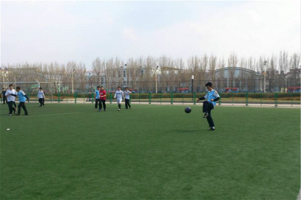比赛开始在中午12时30分准时开始,双方队员全力以赴,紧张对决。上半场,20110117班队员凌空一脚,进球得分,赢得观众与队友的欢呼。于是,全场所有队员立刻进入最佳状态,球场上每位同学都全力以赴,争取比赛的胜利。