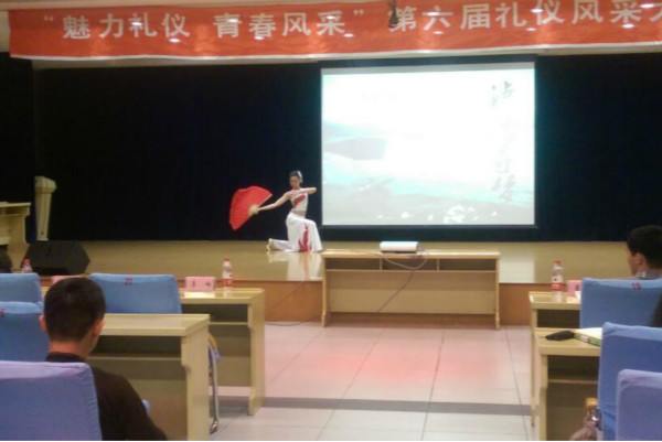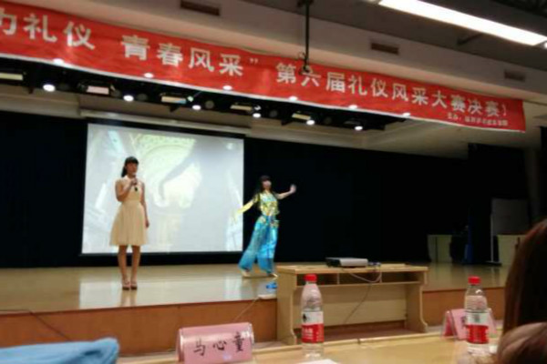 在主持人宣布开场后,各个代表队都尽全力来争夺第一名的桂冠。各院系的礼仪队成员凭借着她们端庄的举止,渊博的学识,优秀的才艺在评委和观众的心目中留下了深刻的印象。
