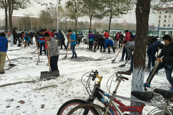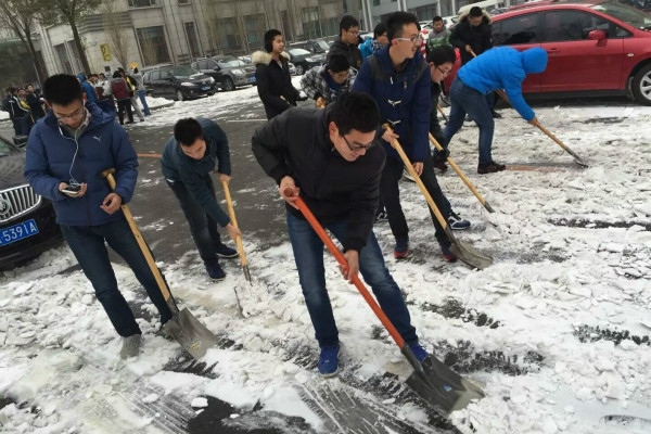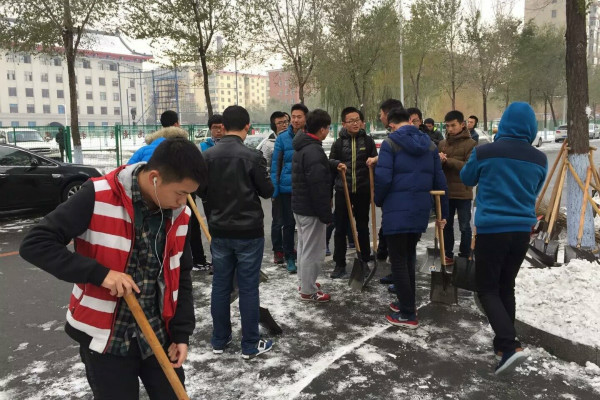 11月10日下午1时,为了更好的服务社会,服务公司,ladbrokes立博2015级员工在船海楼门前开展了扫雪活动。本次活动由ladbrokes立博员工会生活部主办,部长张静与副部李柯垚组织,全体大一新生参与。