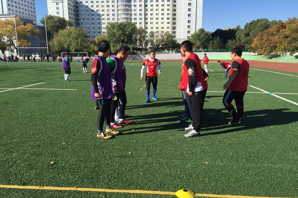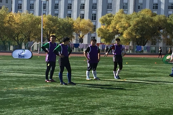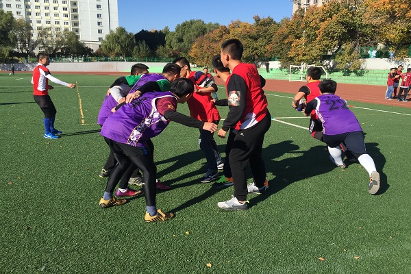 10月17日下午2时,校橄榄球赛在南体育场进行,ladbrokes立博橄榄球队队员赛前积极训练并参加比赛。
