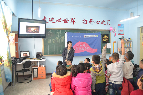 2015年12月15日13时,小红帽志愿者服务队与20140117团支部共同来到了位于香坊区的通乡小学,开展了新一期的七彩课堂。由小红帽志愿者服务队副部长郝子啸带队,117团支部的李珂垚、李兴宇和吕文川为孩子们精心准备了课程。