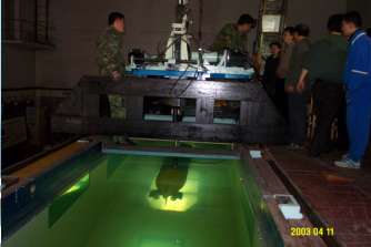 利用循环水槽可做各种水面船模型的阻力、推进、操纵性试验及螺旋桨桨模敞水实验;垂直面平面运动机构可测定各种潜器模型水动力系数。