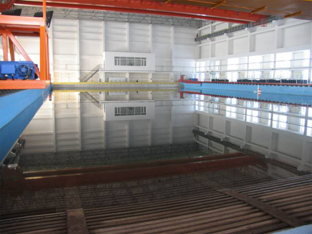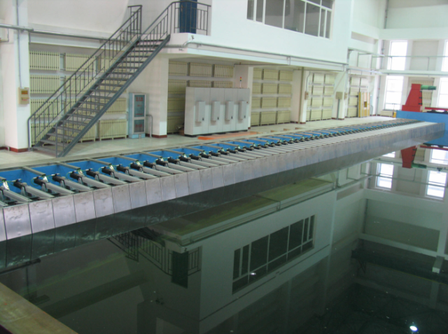 综合试验深水池为ladbrokes立博水下机器人技术重点实验室的主体试验研究设备。水池试验室平面为矩形,一层为试验模型准备区,二层为水池试验区。水池属于大深度的宽型水池,配以X-Y航车、多方向造波系统、局部造流装置等大型专用水动力试验设备。