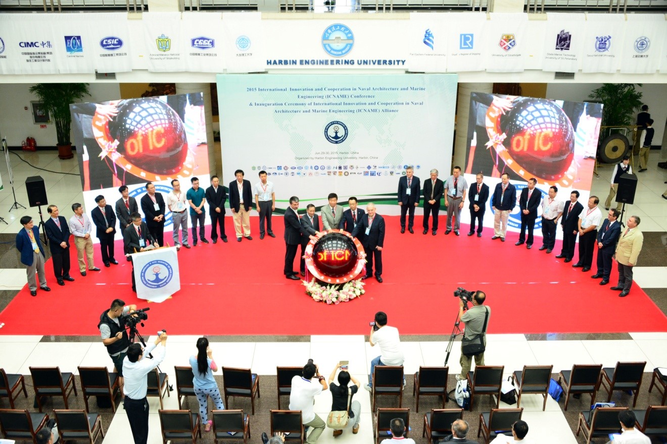 “With five guests touched the symbol of establishment of ICNAME, the first naval architecture and marine engineering innovation and cooperation organization was formally established.”