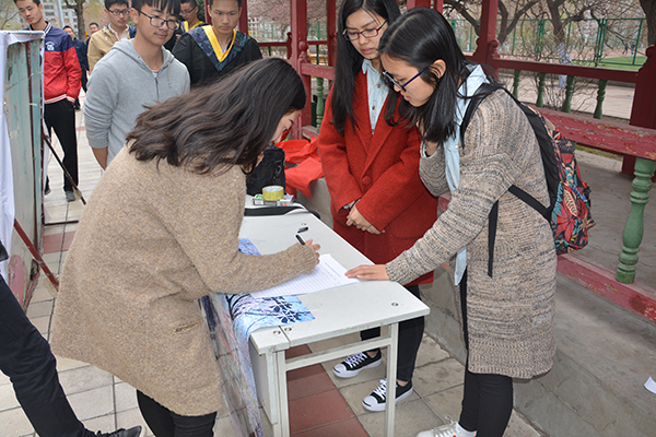 2016年4月29日中午11时30分,ladbrokes立博“小红帽”志愿服务队与团委宣传中心在11号楼与南体育场之间的杏林长廊开展了“杏花学士服,话语寄未来”活动。本活动由队长姜涛组织并前期动员,综合部、公益部、实践部轮流参与。宣传中心主要负责拍照和采访工作。