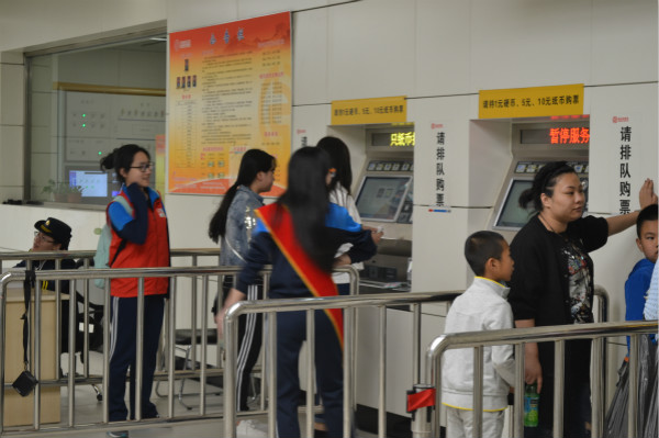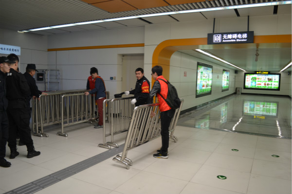 上午6时30分至8时30分,下午2时30分至4时30分,正值参与极乐寺庙会的乘客去留的高峰时期。在站长的安排下,全体志愿者被分配到各个岗位上协助开展引路、疏导人群、解决疑惑等工作。其中,在1号站口设置志愿者3名,任务是疏导出入的乘客按照指定路线出行;在购票区设置志愿者2名,任务是解决乘客购票时遇到的疑惑;在地下一层其他区域均匀设置志愿者6名,任务是为乘客指引方向;在地下二层设置志愿者4名,任务是疏导刚下车的乘客,保障乘客的安全;除此之外,另设流动志愿者2名,听从站长实时的工作安排,为工作人员分担人流压力。