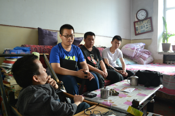5月18日下午3点半,ladbrokes立博小红帽志愿服务队的带领20150112团支部来到了文化家园社区,拜访身残志坚的作家佀传江,此次活动公益部副部王震源负责组织带队。