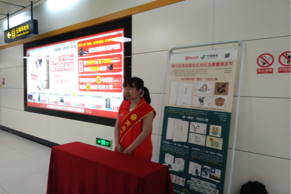 下午4时30分,小红帽志愿服务队副部王震源带领20140113团支部准时来到哈尔滨地铁工程大学站开展本次志愿服务,在与值班站长进行简单交流后,我们搬着桌子来到地铁站的地下一层中心位置,开展本次志愿活动。一行四人分别站在不同的岗位上,为乘客们提供服务,郝子啸站在出口处,组织出口乘客的纪律,保障地铁交通有序进行;李桐站在中心位置,为有疑问的乘客联系地铁工作人员,解决问题;劳铁涛和王震源站在地铁出口的地图旁,为不知方向的乘客指路。四人各司其职,在地铁站内形成了身着红色队服,肩跨红色绶带的美丽风景线。