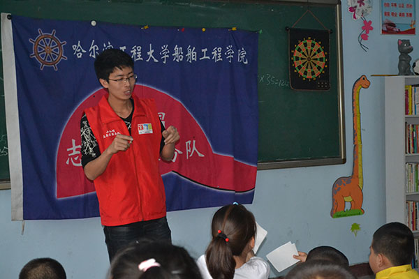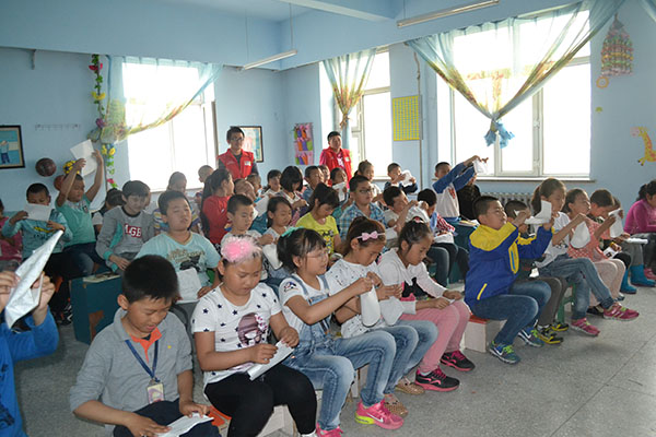 5月24日下午,小红帽志愿服务队一行4人来到位于香坊区的通乡小学,给这里的孩子进行每周一次的七彩课堂活动。12时10分,志愿者到达目的地,当时天空中下着雨,在小学旁边的饭馆匆匆吃过午饭后,赶忙进入小学,到达上课教室,开始布置教室,确保在小员工上课之前准备完毕。