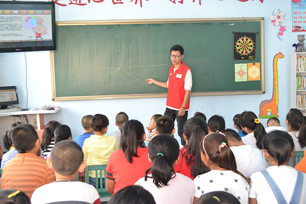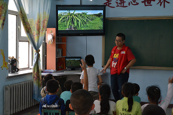 来到通乡小学,小红帽队员们进入教室,简单清扫了教室,打开电脑,把准备好的课件拷入电脑,等待着同学们的到来。第一节课由实践部副部王超主讲,他以火龙果为引子,引出了环境问题,进而引出了石漠化及其危害。期间,同学们积极发言。为了奖励表现优异的同学,小红帽队员带去了小礼品作为奖励,将课堂的气氛推向又一个高潮。遇到同学们难以理解的地方,王超在黑板上为同学们以图画的方式形象的解答了孩子们的疑惑。接下来两节课分别是张沛鑫与高晟鑫担任主讲。