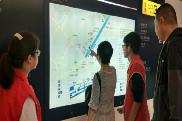 下午2时,领队郭瑞特同时在地下一层和地下二层设立志愿服务区。7名志愿者分为两组,4人在地下一层,3人在地下二层。志愿者们认真研究了地图后,分管不同区域。看到乘客们聚在地图旁,志愿者们便主动上前,提供交通信息,指引出口方向。当有人遇到其他困难时,志愿者们也积极与工作人员沟通,帮助乘客解决困难。
