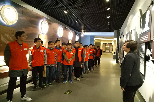 上午八点半,志愿者们到达烈士陵园门口,在与工作人员沟通后,列成整齐的三队,进入陵园。志愿者们首先进入了烈士纪念馆,跟随讲解人员进行参观,队员们认真地聆听讲解,观看展物,了解了很多烈士们的英雄事迹,深受感动。参观完纪念馆后,队员们来到朱瑞将军墓前,进行献花仪式祭奠。队员们站成两排,神情肃穆。仪式第一项为烈士默哀,然后为英雄敬献鲜花,最后全体成员高唱国歌,缅怀先烈,表达崇敬之情。最后,队员们自由参观陵园内的十余座陵墓,纪念英雄,了解他们的英勇的事迹。