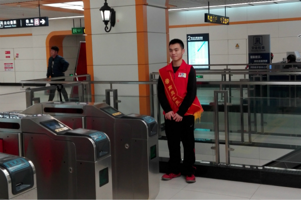 16时30分至17时30分,小红帽志愿者服务队公益部副部王克广分别带领着20150122班团支部来到哈尔滨地铁工程大学站开展志愿服务,王克广进入地铁站内后先与站长进行了简单的交流,然后将团支部的同学们进行了分工。志愿者们分别在地铁出口处,检票口处组织出入乘客的纪律,协助工作人员工作,认真地为乘客指路及给乘客在地铁出口选择上的建议,引导乘客正确把车票投进机器内,保障地铁交通有序进行。