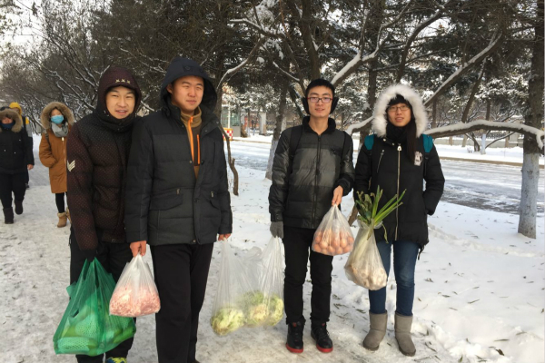 上午6时50分,121支部的两名同学和122支部的三名同学在逸夫楼集合完毕后出发,到省军区社区的菜店购买所须食材。上午8时30分,两个支部的部分同学到餐厅进行活动前期的准备工作。各位同学在餐厅工作人员的指导下,把饺子馅做好,准备下午的正式活动。