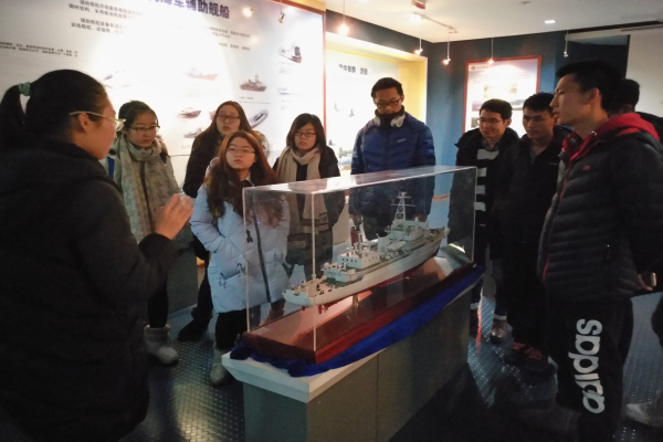 下午三点,122班全体成员在船舶博物馆门前集合完毕,团支书与预约的船舶讲解员取的联系,由她为我们这次参观做讲解。首先讲解员为我们照了一张集体照,随后讲解员带着我们参观各式各样的船舶,其中有古代时期的沙船,舟船还有郑和下西洋时的战船等,当然也有近代的帆船,有传奇色彩的至远舰,定远号。在讲解员的详细讲解下,我们学习了关于公司的特色“三海一核”办学理念,更知道了公司在中国船舶以及核事业上做出的突出贡献,公司自主研制的“万向―Ⅱ”潮流实验电站,还有世界上第一艘气垫登陆实验艇。同时还有公司为航母辽宁号所做出的巨大贡献。下午三点半时,我们集体完成了此次参观。