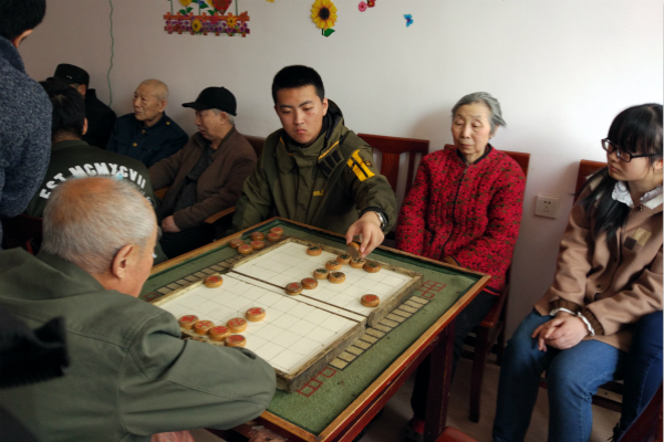 13:30许,团支部在理学楼附近集合,步行前往军工阳光老年公寓。在把为老人准备的礼品交给工作人员后,大家在班干部及老年公寓工作人员的安排下分三组,清理了公寓的两间大厅,并打扫了庭院的落叶。劳动过后,大家来到活动室,和室内的老年人唠家常,倾听他们对后辈的期冀;陪他们下象棋,感受他们沉积的人生智慧。时间所限,15:50同学们和老人道别,返回公司。