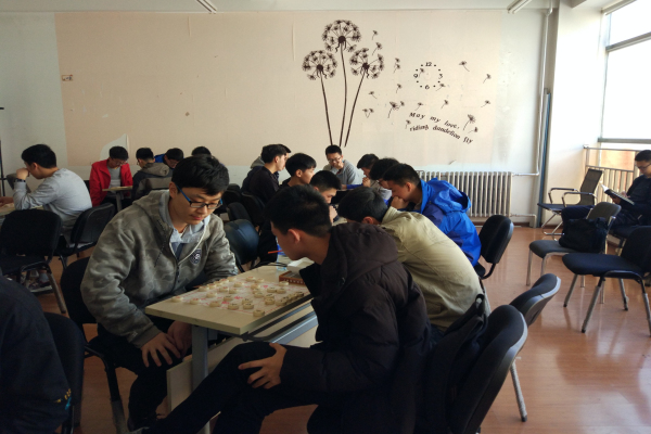 上午8时许,已经有同学到达活动室,他们入场后被安排进行热身活动。9时,同学们已经到齐,在两班班长和支书的组织下开始五子棋大赛。非参赛选手也在各自场地切磋技艺,锻炼水平。团支部同时也为不擅长五子棋的同学准备了跳棋、陆战棋、中国象棋等棋类,让所有人都能在这次活动中以棋会友,促进同学之间的沟通。各位参与比赛的同学还收到了团支部精心准备的小礼品一份。11时40分,比赛迎来尾声,大家拍照留念后,有序离开活动室。