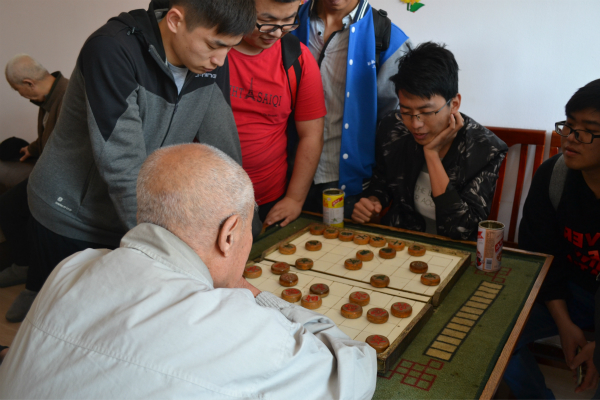 志愿者们到达老年公寓后,团支书王克广先和老年公寓的负责人联系。在活动开始前,王克广为各位志愿者讲解了注意事项。各位志愿者先帮助敬老院擦拭供老人坐的凳子和体育器材。随后,志愿者们去到活动室和老人们亲切交流。在活动室里,有的志愿者走到老人身边坐下和他们聊天,听他们讲过去的故事,我们也把发生在公司的故事讲给老人听;有的志愿者坐下来陪老人下象棋,缓解老人孤独的情绪;还有的志愿者坐在老人身旁,陪老人看电视。14时25分,活动结束,与工作人员合影留念后原路返回公司。