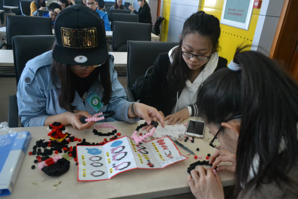 首先,各位参赛人员陆续来到现场,工作人员将事先准备好的号码牌发给各位选手,待选手到齐后,主持人宣布活动开始。比赛一共分六轮,采取积分制。第一轮:小小知识大比拼,本环节采取抢答的模式,通过这种方式来得到原材料,选手们争先恐后,跃跃欲试,场面十分活跃;第二轮:你来比划我来猜,选手们奋力表演,现场气氛十分轻松;第三轮:才艺表演,这是一个加分环节,选手们自愿报名,各显身手,唱歌、诗朗诵、拼魔方,表演方式多样,给整个比赛添加了些许趣味;第四轮:天马行空随心拼,选手根据第一轮中获得的材料自行组装,大家都开动脑筋,创意十足,或埋头构思,或动手操作,十分专心;第五轮:我和它的故事,选手根据自己组装的物品写一段“献”身寄语,每个组都用手中的明信片给为孩子们写下了心中的祝福与寄语。第六轮:分数统计,复赛分数与初赛的积分进行累加,决出名次,最后进行颁奖仪式。