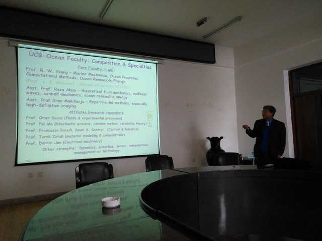 2017年4月27日,美国加州大学伯克利分校水动力与海洋工程专业Ronald W. Yeung教授访问ladbrokes立博海洋可再生能源研究中心,并在船海楼3楼315大会议室做了题目为“Ocean Engineering Research at UC Berkeley –An Overview”的学术报告。报告介绍了加州大学伯克利分校在浮式风机、点吸式波浪能装置、船舶横摇运动研究方面的进展及取得的成果。