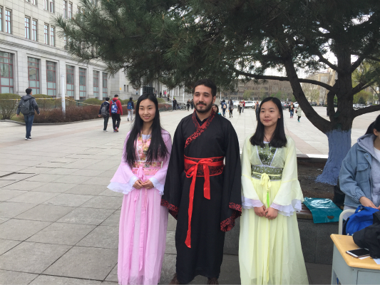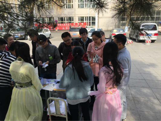 活动开始后,大家在广场上积极宣传。同时,两名女同学身穿汉服向过往的同学们直观地展示汉服的魅力,团支部同时还准备了两套汉服供同学们试穿体验。活动的主体依托四种游戏进行,涵盖了汉文化的不同方面,寓教于乐,让大家在参与游戏的同时,审视自己对于汉文化的了解程度。活动现场,同学们积极参与,并且还有许多外国友人加入进来。