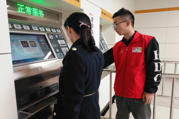 上午8点,下午4点半,唐登高、冒刘鹏分别带着20160117、20160122团支部到地铁站。在完成站长处报道后,开始协助工作人员展开服务工作。各团支部被分为两部分,一组前往售票处,主动帮助乘客解决关于购票与路线的问题,并在机器出现问题后,主动引导乘客去人工售票处完成购票。另一组成员在检票口服务,协助乘客有序出站,解决部分乘客不熟悉检票流程的问题,以及出站口的指引。