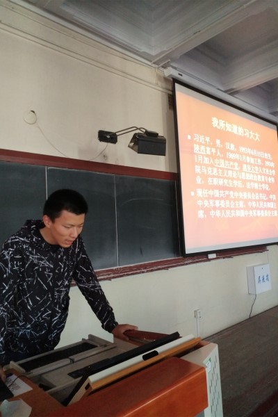 活动伊始,班长樊其祥简要介绍了习近平主席。紧接着,同学们一个接一个向大家述说习近平在他们眼中的样子:刘鹏讲述了习近平如何成功劝说农民武刚文(小名随娃)重新担任生产队队长;陈越泽说了一个关于习近平如何通过实际行动消除村民误会的故事。随后大家一起听了记录语音“别人口中的习近平”,了解了习近平一些不为人知的朴素生活片段。大学第一次团日活动在团支书钱睿的总结下落下帷幕。