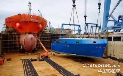 艏部分段的成功吊装合拢,预示着全船主船体贯通完成,该船将于九月中下旬的按期下水。