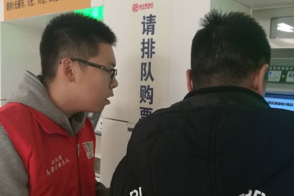 上午八点,下午四点半,杨子鹏、陈阔分别带着两班团支部到达工程大学地铁站。在站长处报道后,团支部开始协助工作人员开展服务工作。两个团支部分别分成两部分在地铁站两端地铁口展开工作。每组的两人中,一人主动去帮助乘客解决乘客解决关于购票与路线的问题。另一人则在出站口服务,帮助乘客能够顺利有序地出站,并为乘客解决出站口路线问题。