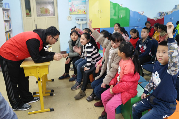 在与通乡小学的老师进行一番沟通后,志愿者开始上课,两名志愿者分别负责讲解与维持课堂秩序。第一节课的内容是给同学们介绍一些豪华邮轮,课堂上,志愿者给同学们介绍了诸如海洋量子号、珍爱号等世界上著名的豪华游轮,孩子们纷纷被吸引。第二节课志愿者给小朋友讲解的是船海历史:从船的出现到现代的大型轮船的发展以及人类对海洋的探索等等。随后,志愿者向孩子们提出问题,并让一些同学到讲台发言。同学们踊跃举手发言,积极参与到课堂活动中并与者愿者们互动。