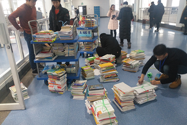 志愿者们准时到达图书馆,读者协会负责人和图书馆的老师布置本次的工作内容,并发放推车和剪刀等工具。志愿者们分成一组,负责整理3A和5A预约区的存放柜和预约情况。志愿者们有条不紊地将各自负责区域内的存放柜清理干净,将柜子里的非书籍东西清理,由读书协会负责人写条记录,以防来找东西的同学找不到自己的东西;最后将清理来的东西统一放在图书馆634存放室。