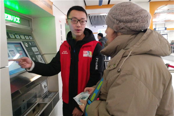 上午8点,下午4点半,冒刘鹏、杨子鹏分别带着20170114和20170111团支部到地铁站。在站长处报道后,开始协助工作人员张开服务工作。两个团支部被分为两部分,一组前往售票处,主动帮助乘客解决关于购票与路线的问题,并在机器出现问题后,主动引导乘客去人工售票处完成购票。另一组成员在检票口服务,协助乘客有序出站,解决部分乘客不熟悉检票流程的问题,并为乘客解决出站口路线问题。